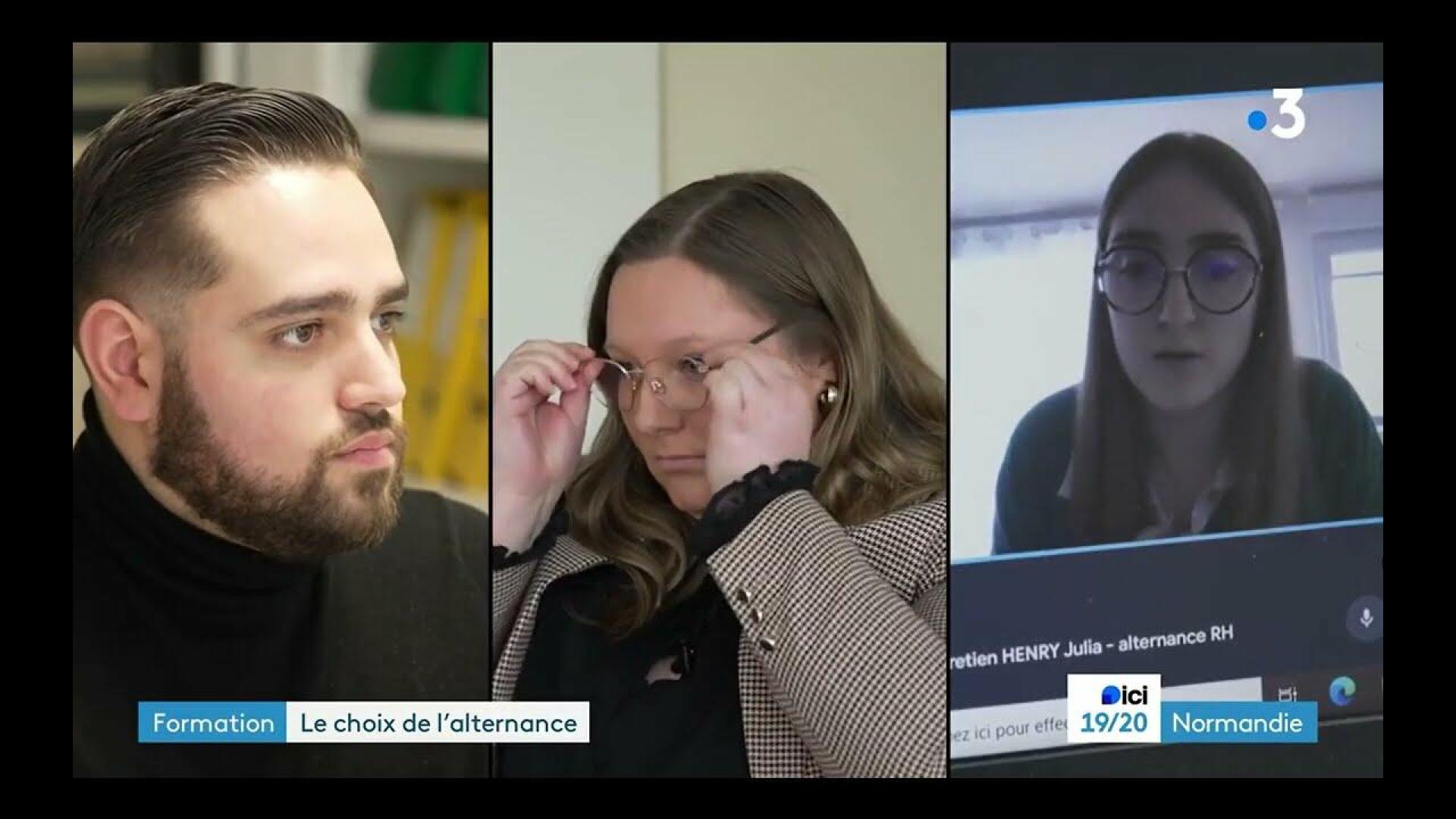 Lors de ce e-job dating, l’équipe de France 3 Normandie est venue tourner un reportage sur le choix de l'alternance. L’occasion d’échanger avec les anciens alternants Cerfrance maintenant embauchés, les alternants actuels et les candidats du jour :
